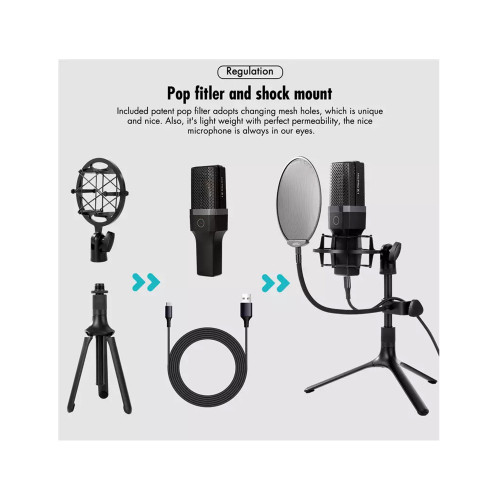 این میکروفون با داشتن سه پایه مجهز به لرزهگیر و همچنین پاپ فیلتر، قابلیت تنظیم ارتفاع را نیز دارا است که باعث میشود هنگام استفاده ، از پایداری مناسبی برخوردار باشد. از ویژگیهای خاص این میکروفون ظاهری زیبا و طراحی ظریف است که بواسطه وزن کم و ابعاد کوچک خود میتواند تجربهای ضبط صدای منحصر به فردی را در اختیار شما قرار دهد.