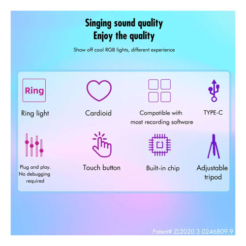 | سایر مشخصات میکروفون | بدون نیاز به نصب درایور | طراحی منحصر به فرد | کلید لمسی برای قطع و وصل میکروفون | دارای پایه ضد ضربه | دارای پاپ فیلتر | ضبط صدا با کیفیت بالا |