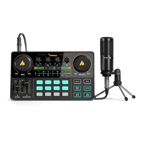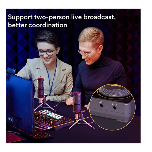 وجود دو ورودی میکروفن همزمان نیز موجب شده امکان پخش زنده و مانیتورینگ همزمان برای دو نفر وجود داشته باشد (توجه: رابط صوتی این دستگاه فقط با میکروفونهای با جک 3.5 میلی متری سازگاری دارد و قابل اتصال به میکروفون های USB یا XLR to XLR نیست؛ همچنین از فانتوم پاور پشتیبانی نمیکند.)