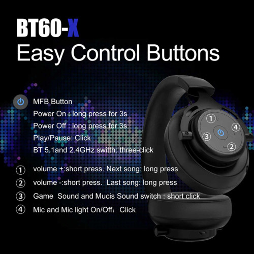 مشخصات فنی هدست گیمینگ بیسیم آبینگو مدل BT60X