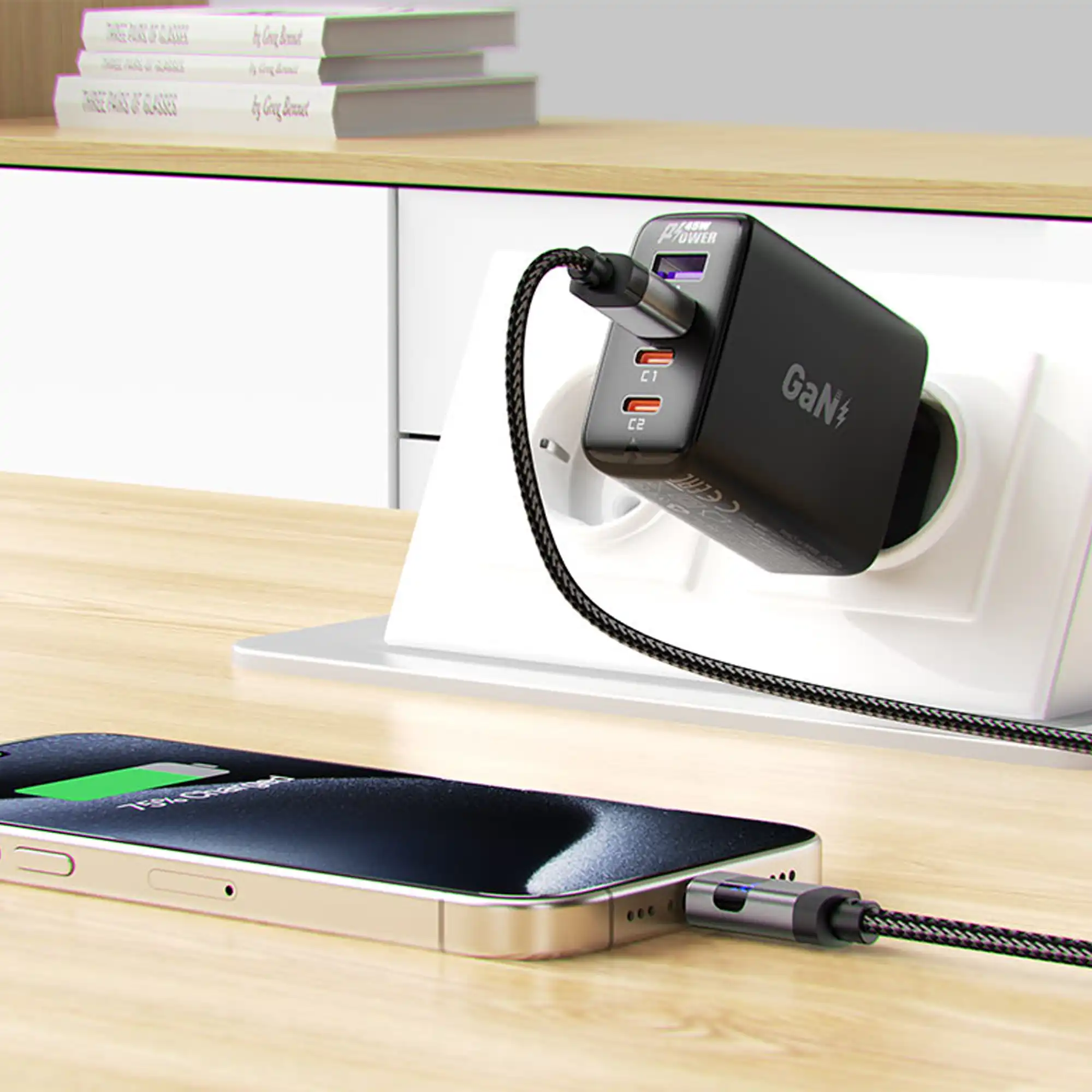 | سایر مشخصات کابل و تبدیل | انتقال داده پرسرعت USB2.0 | نمایشگر LED میزان توان شارژ | تست مقاومت 10000 بار خمشدن | استانداردهای ایمنی FCC، CE، RoHS، EAC | شارژ سریع 66 وات |