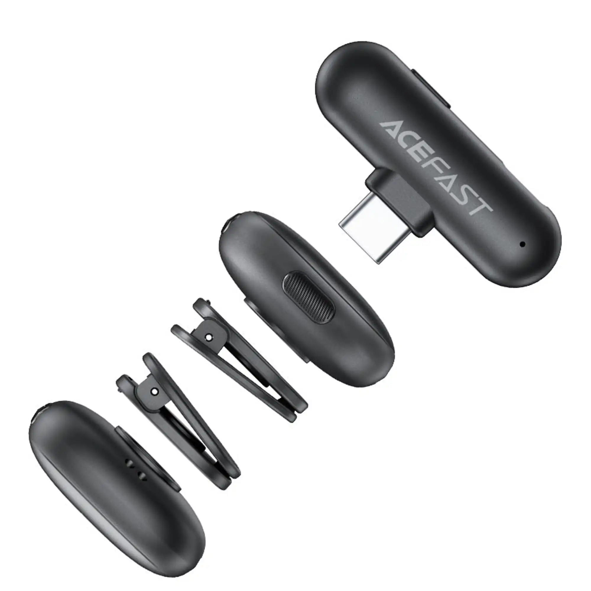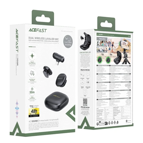 | اقلام همراه میکروفون | دفترچه راهنما | ۱ عدد گیرنده | دو میکروفون | کیس شارژ | کابل USB-A به USB-C |