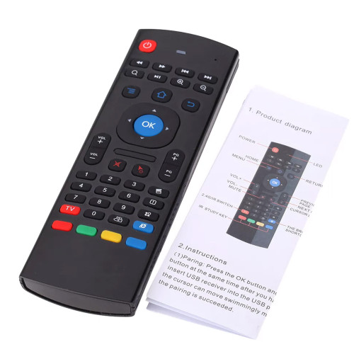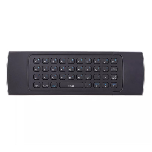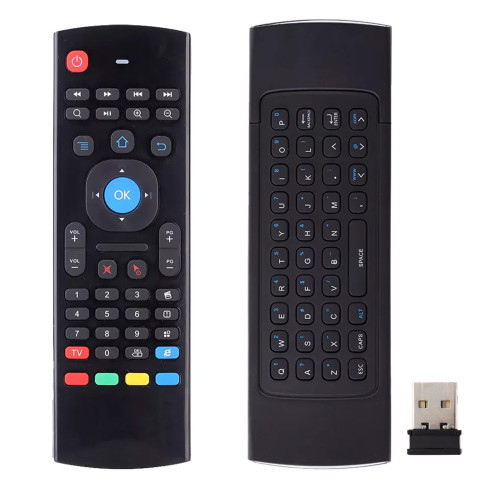 ریموت کنترل Air mouse و کیبوردار مدل MX3 ترکیبی از IR و Wireless RF است و با طراحی ارگونومیکی که دارد به راحتی در دستان شما و در هر دو حالت افقی و عمودی جای میگیرد. این ریموت کنترل به دلیل علمکرد بیسیم مشابه ماوس، به ماوس بی سیم یا Air Mouse نیز معروف است. MX3 یک ریموت کنترل Plug & Play است که خیلی سریع و راحت و بدون نیاز به نصب برنامه خاصی راه اندازی میشود. کیبورد این ایرماوس با دارا بودن صفحه کلیدی برجسته مناسب برای چت، تایپ سریع، ارسال ایمیل، وبگردی و جستجو است. MX3 از نظر ابعاد و وزن در حد و اندازههای کنترلهای معمولی است و از لحاظ ظاهری نیز تفاوت چندانی با کنترلهای معمولی ندارد. این ایرماوس از طریق دانگل USB به تلویزیون شما متصل میشود و تا فاصله 10 متری میتواند تمام فرامین شما را به مرحله اجرا دربیاورد. از سویی دیگر این ایرماوس دارای سنسورهای حرکتی است و شما میتوانید با حرکت دادن کنترل، نشانگر ماوس را نیز بر روی تلویزیون به حرکت درآورید. لازم به ذکر است که این محصول به صورت انحصاری برای تلویزیونهای هوشمند طراحی نشده است و در مواقع گوناگون از جمله ارائه کنفرانس، از این وسیله میتوانید استفاده کنید. علاوه بر این، MX3 با دیتا پروژکتورها نیز سازگاری کامل دارد و میتواند در جلسات مختلف یک دستیار عالی برای شما باشد. MX3 با انواع سیستم عاملهای ویندوز، اندروید و لینوکس سازگاری کامل دارد. ( اکثر قریب به اتفاق تلویزیونهای هوشمندی که از سیستم عاملهای مجزا بهره میبرند نیز با این ایرماوس سازگاری کامل دارند). انرژی مورد نیاز این محصول از طریق دو عدد باتری نیم قلمی تامین میشود.