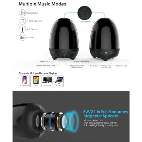 اسپیکر بلوتوثی و چراغ خواب رومیزی قابل حمل لمسی اِیسکول مدل S609