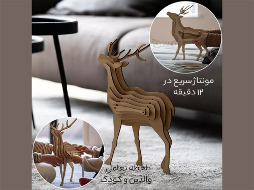 چراغ چوبی رومیزی فانتزی شارژی طرح گوزن