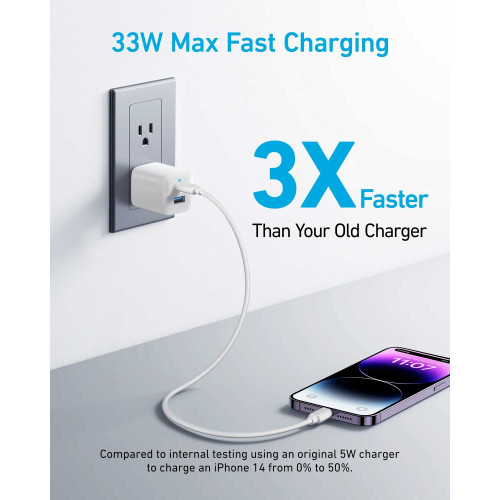 شارژر دیواری انکر مدل A2331G21 با وزن فقط ۹۰ گرم و ابعاد جمعوجور ۳.۵ در ۳.۵ در ۴.۸ سانتیمتر طراحی شده؛ این یعنی بهراحتی توی کیف یا حتی جیب جا میگیره و برای سفر یا استفاده روزمره خیلی مناسبه. بدنهی شارژر از جنس پلاستیک مقاوم ABS ساخته شده که هم در برابر حرارت و ضربه مقاومه و هم ظاهر زیبایی داره.