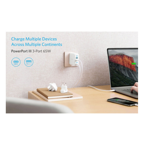 شارژر دیواری Type-C انکر POWER PORT III مدل A2033 H11/H21 با ویژگیهای فنی برجستهای طراحی و تولید شده. این شارژر دارای سه درگاه خروجی هست که یکی از آنها پورت Type-C و دو درگاه دیگر از نوع USB هستن. شدت جریان و ولتاژ خروجی این شارژر برای پورت Type-C به ترتیب 5 ولت/2.4 آمپر، 9 ولت/3 آمپر، 15 ولت/3 آمپر و 20 ولت/2.25 آمپر و برای پورت USB 5 ولت/4 آمپر هست. توان خروجی این شارژر 65 واته. این محصول از فناوری Quick Charge 3.0 و Power Delivery هم پشتیبانی میکنه و دو درگاه USB-A با جریان 2.4 آمپر مه تو این شارژر وجود داره دست شما رو توی خیلی مسائل باز میذاره.