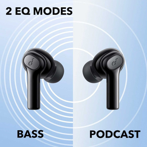 با شارژ کردن ایرپاد SOUNDCORE LIFE P2i تنها توی 10 دقیقه، میتونین ازش یک ساعت استفاده کنین. همچنین میتونین هر کدوم از مودهای بیس یا پادکست رو هم روی اون انتخاب کنین.