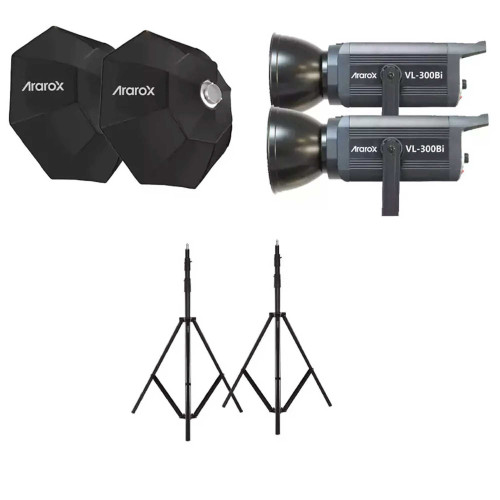 | اقلام همراه | دو عدد Ararox VL300، دو عدد اکتاباکس 90 سانتی متر آراروکس، دو عدد سه پایه نور ایلکین iA-260LS |