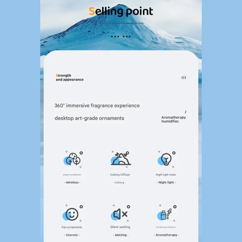 ویژگیهای خاص | طراحی کوه یخ چرخان، نورپردازی آرامشبخش، رطوبتسازی بیصدا |