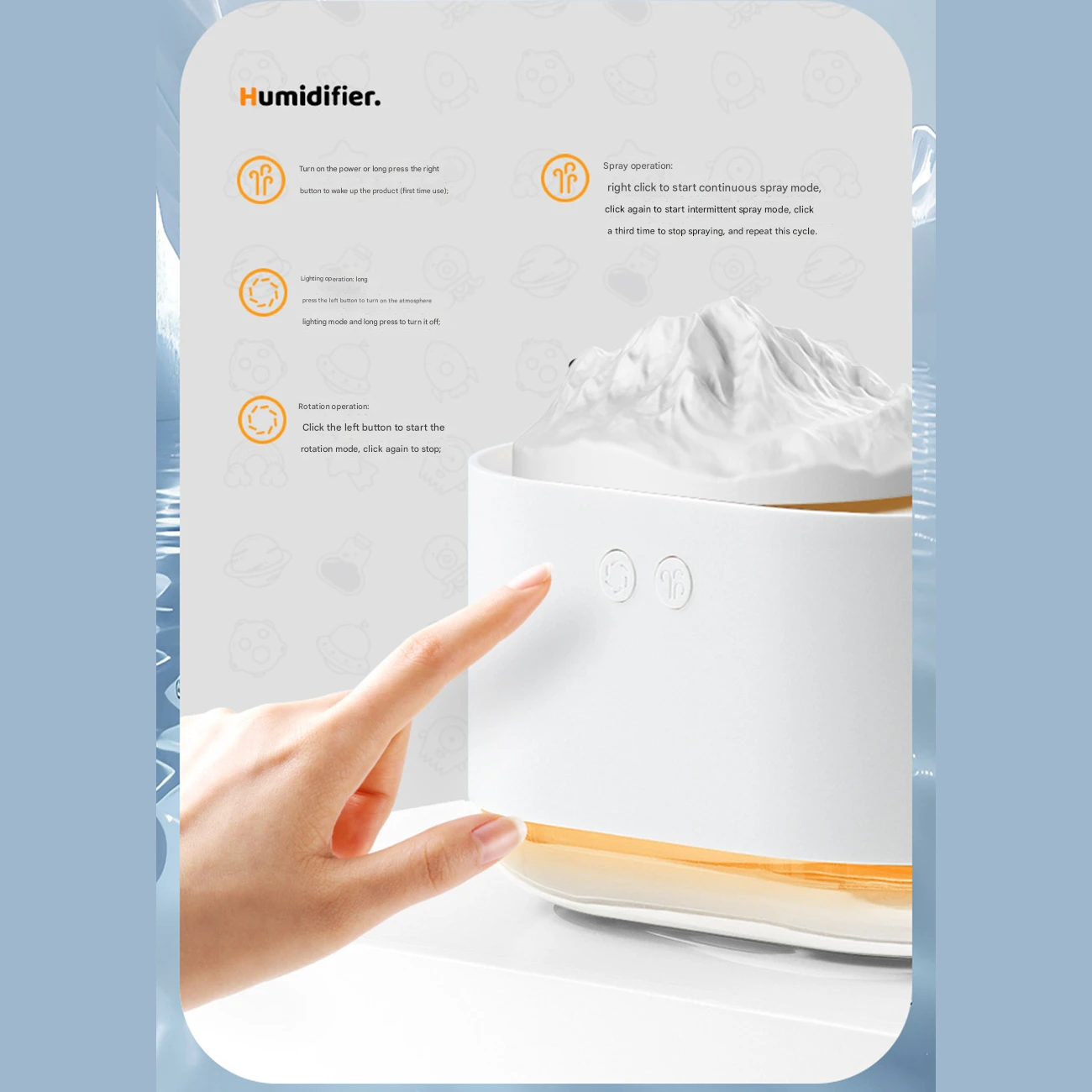 دستگاه بخور سرد و آروماتراپی شارژی طرح کوه یخ چرخان مدل H1S
