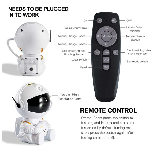 ریموت کنترل این مدل به شما اجازه میده حالت نور (کهکشانی یا ستارهای)، شدت نور و حتی زمان خاموش شدن دستگاه رو تنظیم کنین.