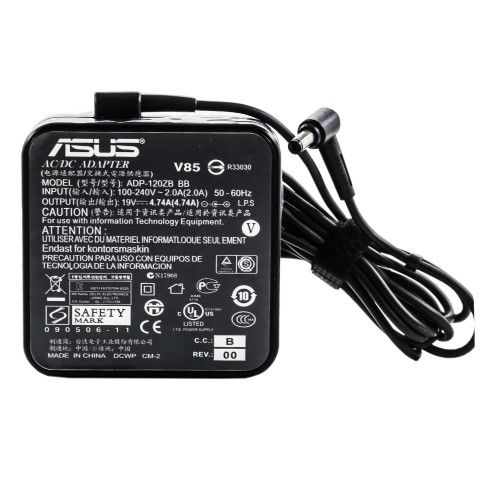 شارژر لپتاپ ایسوس ADP-120ZB 90W شدت جریان و ولتاژ ورودی 100-240 ولت و 2 آمپری داره و شدت جریان و ولتاژ خروجی اون هم 19 ولت و 4.74 آمپر با توان خروجی 90 واته.