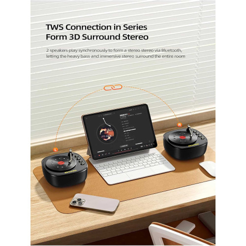 اتصال بیسیم از طریق بلوتوث نسخه 5.3 انجام میشه که سرعت اتصال بالا و پایداری خیلی خوبی داره. همچنین، پشتیبانی از ورودیهای AUX و کارت حافظه TF Card باعث میشه بتونین به چند روش مختلف موزیکهاتون رو پخش کنین. وجود میکروفون داخلی، قابلیت پاسخگویی تماس، رادیو، و کنترل موزیک از ویژگیهای کاربردی این اسپیکر هستن.