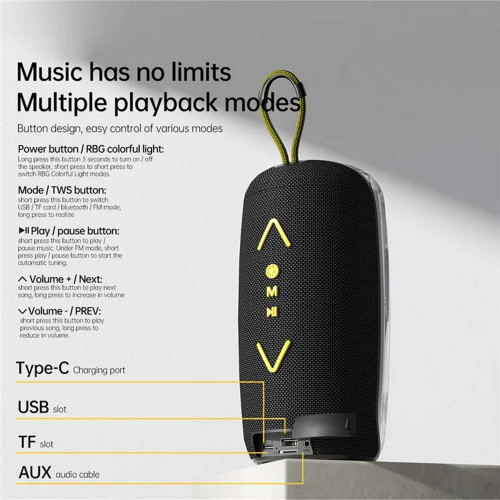- اتصالات متنوع: پشتیبانی از بلوتوث، USB، AUX و TF Card برای اتصال به انواع دستگاهها.