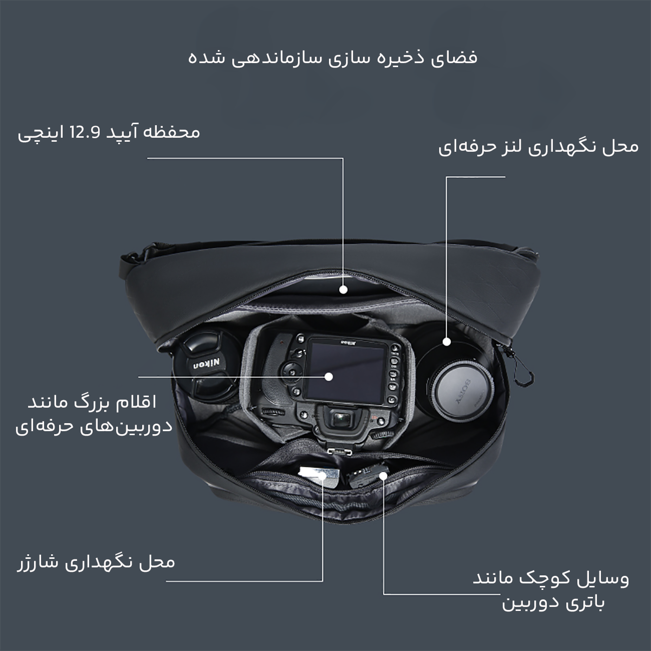 | تعداد جیب | سه محفظه با جیبهای مجزا |