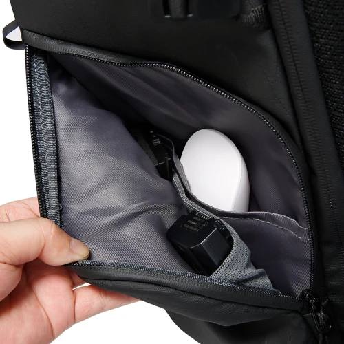 - تعداد جیب : دو جیب اصلی برای لپ تاپ، آیپد و دوربین + جیبهای نظمدهنده داخلی + جیبهای بیرونی