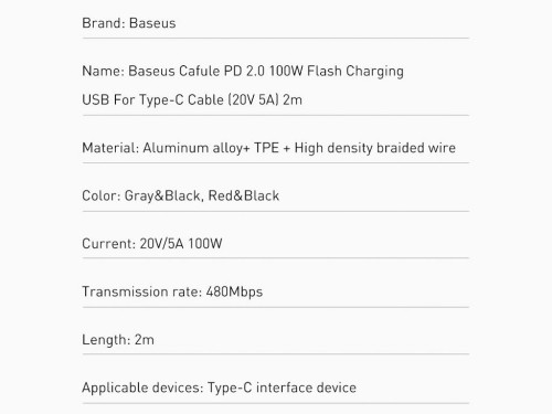 کابل Type-C به Type-C باسئوس مدل CATKLFALG1 CATKLFAL91