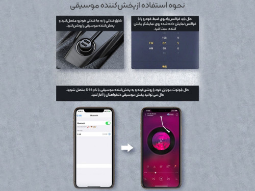 شارژر فندکی فست شارژ ماشین با قابلیت پخش موسیقی و تماس باسئوس مدل CCMTE01