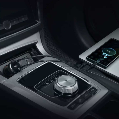 این شارژر فندکی از نظر طراحی ظاهری واقعاً شیک و حرفهایه. بدنه دستگاه از ترکیب پلاستیک و فلز ساخته شده که هم مقاومت خوبی در برابر حرارت و فشار داره و هم حس لوکستری بهش میده. قسمت کانکتور فندکی دستگاه با وکش طلا طراحی شده که هم اتصالی مطمئنتر فراهم میکنه و هم ظاهر جذابتری داره. طراحی جمعوجور شارژر باعث شده فضای زیادی اشغال نکنه و بهراحتی داخل فندکی خودرو قرار بگیره. وجود نمایشگر دیجیتال هم یه مزیت دیگهست که اطلاعات لحظهای شارژ رو نشون میده.