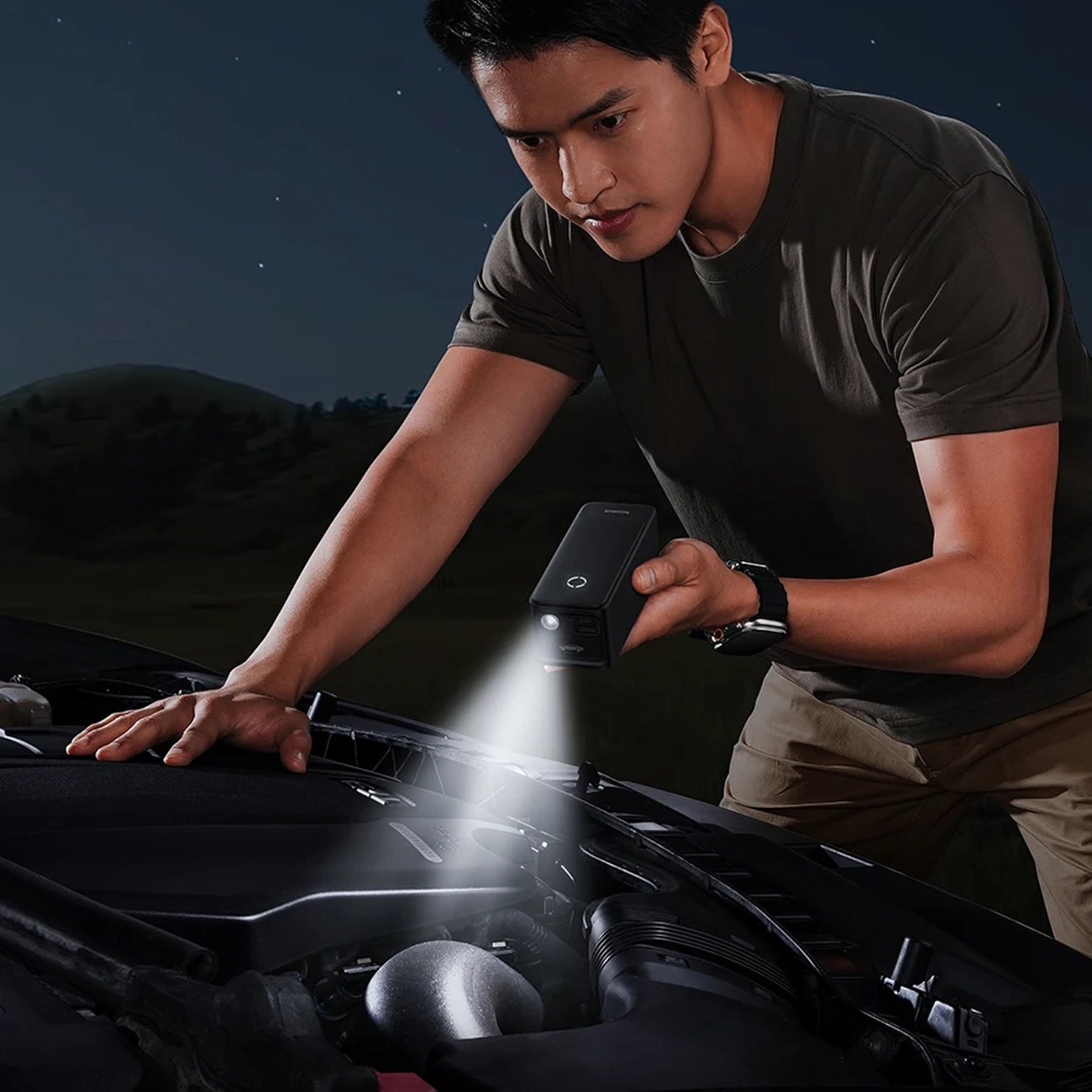 جامپ استارتر خودرو و چراغ قوه و پاوربانک باسئوس مدل BSCH006 با ظرفیت 6000 میلیآمپر ساعت