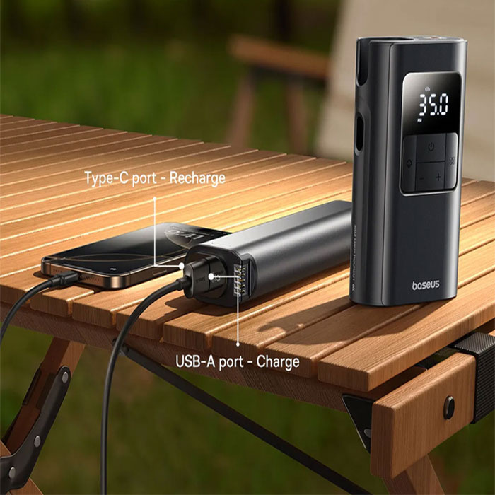 پمپ باد شارژی چراغ قوه و پاوربانک باسئوس مدل VA1 BSCG034