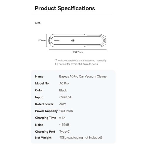 جارو شارژی قابل حمل باسئوس مدل A0 Pro