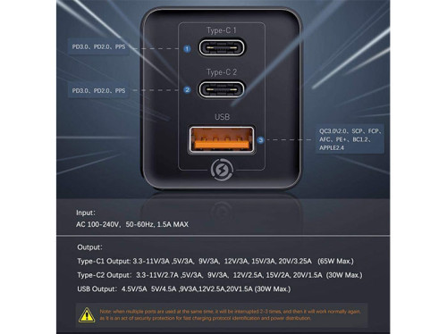 | ولتاژ خروجی | Type-C1:45W - Type-A:18W | (63W Max)، Type-C1:45W - Type-A+Type-C:15W | (60W Max) |