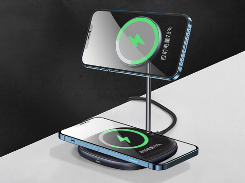 - دارای شارژ دوگانه از طریق پنل بالا(سازگار با آیفون سری ۱۲ و ۱۳) و پنل پایین (گوشی های سازگار با شارژ وایرلس Qi)