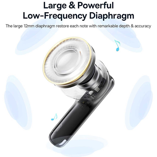 از نظر فنی، این هدفون عملکرد بینقصی داره. اتصال بیسیم از طریق بلوتوث نسخه 5.3 انجام میشه که سرعت اتصال بالا و پایداری خیلی خوبی داره و تا فاصله ۱۰ متری بدون مانع، اتصال حفظ میشه. درایورهای ۱۲ میلیمتری صدایی با وضوح بالا و بیس عمیق تولید میکنن که تجربه شنیداری رو لذتبخشتر میکنه. منبع تغذیه، باکس شارژیه که باتری 400 میلیآمپری داره و ایرپادها هم با باتری 40 میلیآمپری، در حالت پخش تا ۶ ساعت شارژ نگه میدارن. با کیس شارژ هم تا ۳۰ ساعت میتونین ازش استفاده کنین. شارژ کاملش هم فقط یه ساعت زمان میبره.