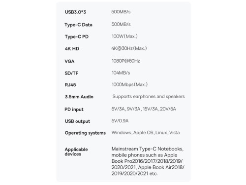 | Type-C PD | 100W (Max.) |