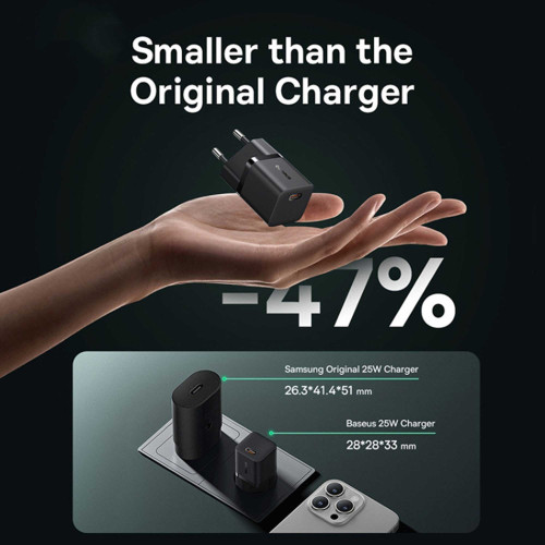 اگه دنبال یه شارژر دیواری جمعوجور، با کیفیت ساخت بالا و شارژ سریع واقعی هستی، وقتشه با شارژر باسئوس مدل GAN5 1C توان 25 وات آشنا بشی. این مدل که به تکنولوژی GAN (گالیوم نیترید) مجهزه، نسبت به شارژرهای قدیمیتر با توان مشابه، اندازهی خیلی کوچکتری داره اما همچنان شارژدهی پرقدرت و پایداری رو ارائه میده.