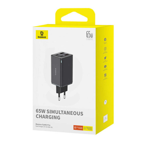 ویژگیهای کلیدی شارژر دیواری باسئوس GAN6 Pro 65 وات