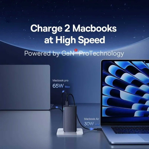 پورت Type-C با قابلیت پشتیبانی از شارژ سریع PD (Power Delivery) برای شارژ سریع لپتاپ، مکبوک و دیگر گجتهای مجهز به USB-C فوقالعاده عمل میکنه. در کنار اون، پورتهای USB هم برای شارژ گوشی، پاوربانک یا هندزفریهای بیسیم کاملاً مناسب هستن.