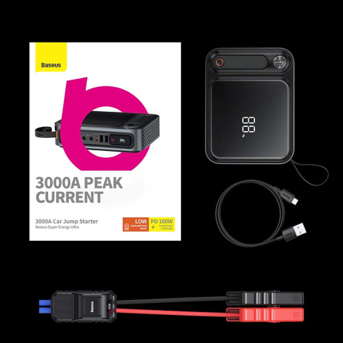 پاوربانک و جامپ استارتر باسئوس مدل B5CH005 ظرفیت 3000 میلی آمپر ساعت