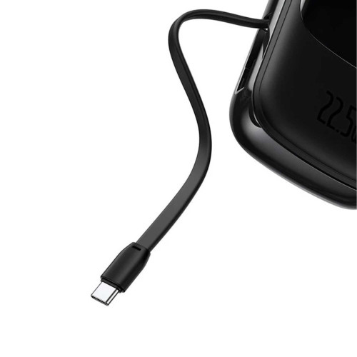 پاوربانک باسئوس Qpow Pro با وزن 236 گرم و ابعاد 70.6 × 117 میلیمتر و ضخامت 25 میلیمتر، یه طراحی جمعوجور و خوشدست داره که بهراحتی تو جیب یا کیف جا میگیره. بدنه این محصول از پلاستیک باکیفیت و ABS ساخته شده که در برابر خطوخش و ضربه مقاومت خوبی داره و حس مدرنی بهش میده. یه نشانگر LED هم روی بدنه قرار داره که میزان شارژ باقیمونده رو بهصورت واضح نشون میده، پس همیشه میتونین وضعیت باتری رو چک کنین. کابل Type-C متصل هم باعث میشه که دیگه نیازی به حمل کابل جداگونه نداشته باشین.