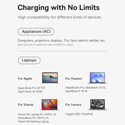 | خروجی USB1/USB2 | 5.0V-3.0A (15.0W); 9.0V-3.0A (27.0W);12.0V-3.0A (36.0W); 20.0V-3.0A (60.0W) |
