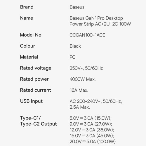 Baseus Power Strip CCGAN1001ACE BSPSZM000401