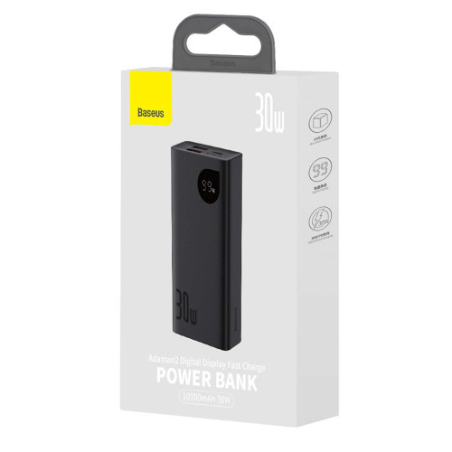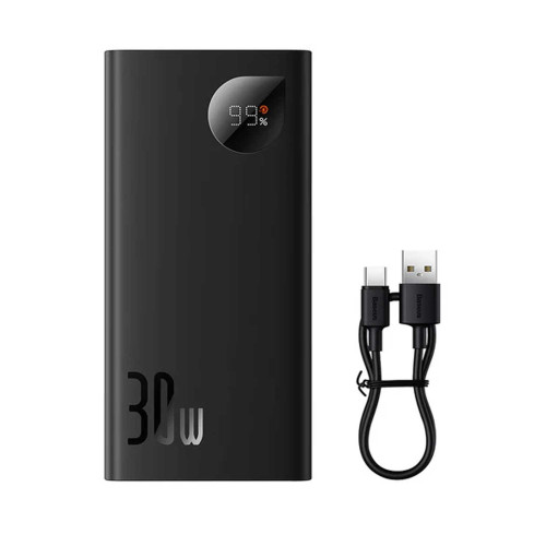 پاور بانک باسئوس مدل PPAD040101 ظرفیت 10000 میلی آمپر ساعت محصولی با طراحی مدرن و زیباست که با رنگ مشکی خودش چشم نوازی میکنه. این پاوربانک دارای وزنی در حدود 206 گرم هست و ابعاد اون معادل 26.5 × 54 × 111.2 میلی متر تا خیالتون رو راحت کنه که محصولی کم وزن و کم حجم برای حمل هستش. این محصول از جنس ABS (پلاستیک مقاوم) بوده و کابلی گرد و پلاستیکی به طول 50 سانتیمتر داره. کلیدهای این محصول مکانیکی بوده و دارای صفحه نمایش LCD هم هست.