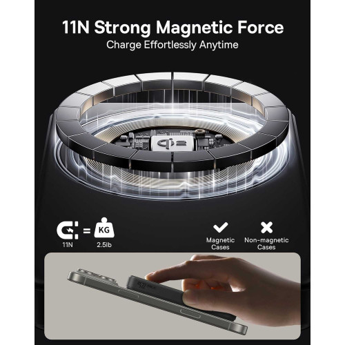 طراحی مغناطیسی این مدل باعث شده که گوشیهایی که از قابلیت مگسیف یا مشابه اون پشتیبانی میکنن، بدون نگرانی از افتادن یا جدا شدن، روی پاوربانک قرار بگیرن و با اطمینان کامل شارژ بشن.