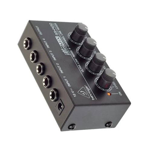 این دستگاه دارای 4 ورودی لاین مونو TS و یک خروجی مونو TS هست. نسبت سیگنال به نویز 90 دسیبل و سطح ورودی/خروجی حداکثر +16 dBu کیفیت قابل قبولی رو ارائه میده. منبع تغذیه این میکسر از طریق آداپتور 12V DC، 500mA تأمین میشه. داخل دستگاه هم از آمپلیفایرهای عملیاتی کمنویز 4580 استفاده شده که شفافیت صدا رو بالا میبرن.