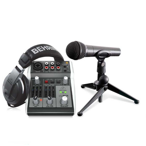 توی این پکیج یه میکروفون داینامیک از نوع پخش زنده، به اسم Behringer XM8500 قرار داده شده که طراحی کلاسیک و مستحکمی داره. میکروفون به همراه پاپ فیلتر دو مرحلهای ارائه میشه که کمک میکنه صداهای اضافی مثل "پ" و "س" حذف بشن. هدفون موجود توی بسته هم مدل HPM1000 هست که بهخاطر پاسخ فرکانسی گسترده و عملکرد خوب، مناسب برای شنیدن دقیق و بررسی صداست.