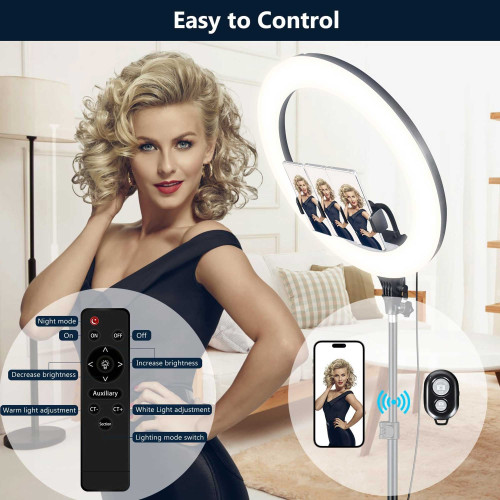 این رینگ لایت به دو روش قابل کنترل هست: با دکمه چرخشی روی بدنه و همچنین با ریموت کنترل بیسیم IR.
