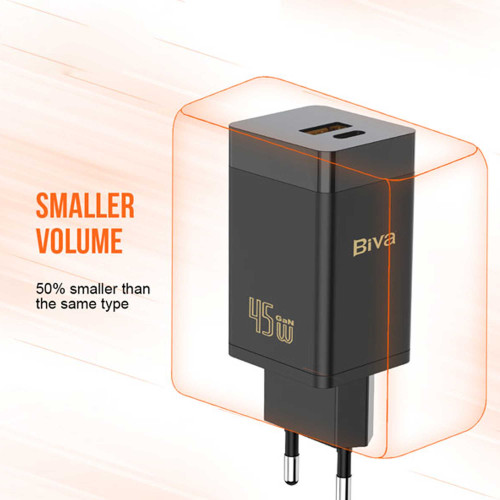 شارژر دیواری بیوا HC15 با دو پورت خروجی (USB و Type-C) و توان کلی 45 وات (5 ولت/3 آمپر) طراحی شده که امکان شارژ سریع و ایمن رو برای دستگاههای مختلف فراهم میکنه. این شارژر از فناوریهای شارژ سریع PD (Power Delivery) و QC (Quick Charge) پشتیبانی میکنه و بهخصوص برای گوشیهای سامسونگ بهینه شده. فناوری GaN (گالیوم نیترید) باعث میشه این شارژر با ابعاد کوچک، کارایی و توان بالایی داشته باشه و در عین حال خنک بمونه. کابل Type-C به Type-C همراه این محصول هم اتصال سریع و راحت رو تضمین میکنه. گواهینامههای CE، FCC و RoHS هم کیفیت و ایمنی این شارژر رو تأیید میکنن.
