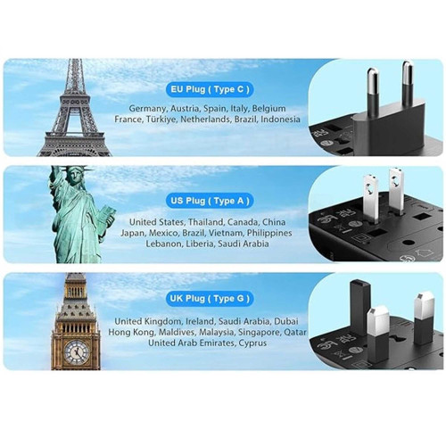 - قابلیت استفاده بهعنوان مبدل برق جهانی با پریزهای مختلف