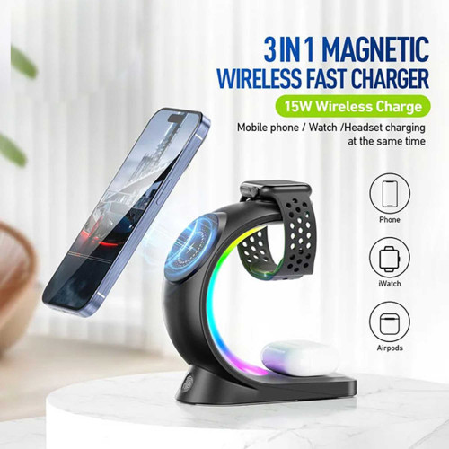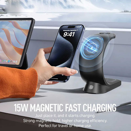 استند و شارژر وایرلس چندکاره مگنتی بیوا مدل WLC13 با امکان شارژ اپل واچ