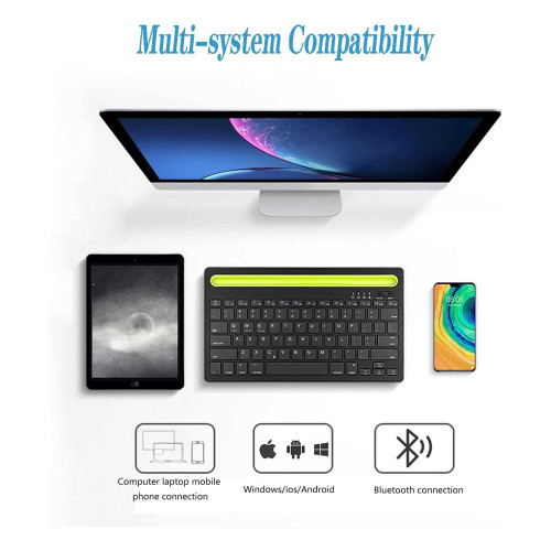 بله، این کیبورد از طریق بلوتوث به گوشیهای هوشمند، تبلت و لپتاپ متصل میشه و کاملاً سازگاره.