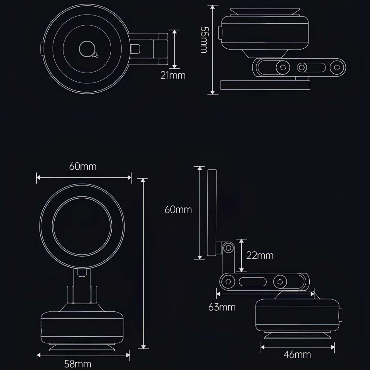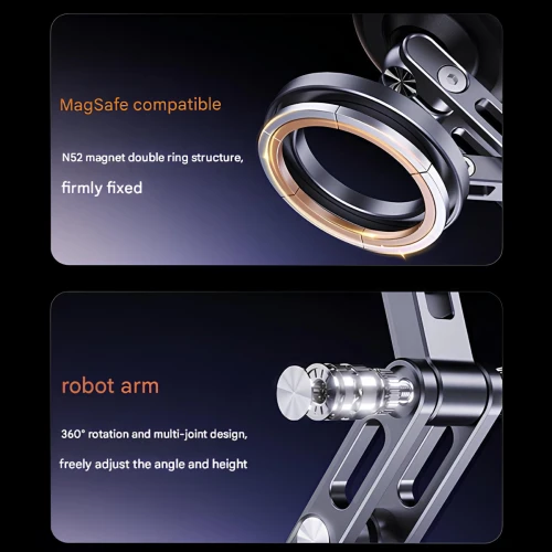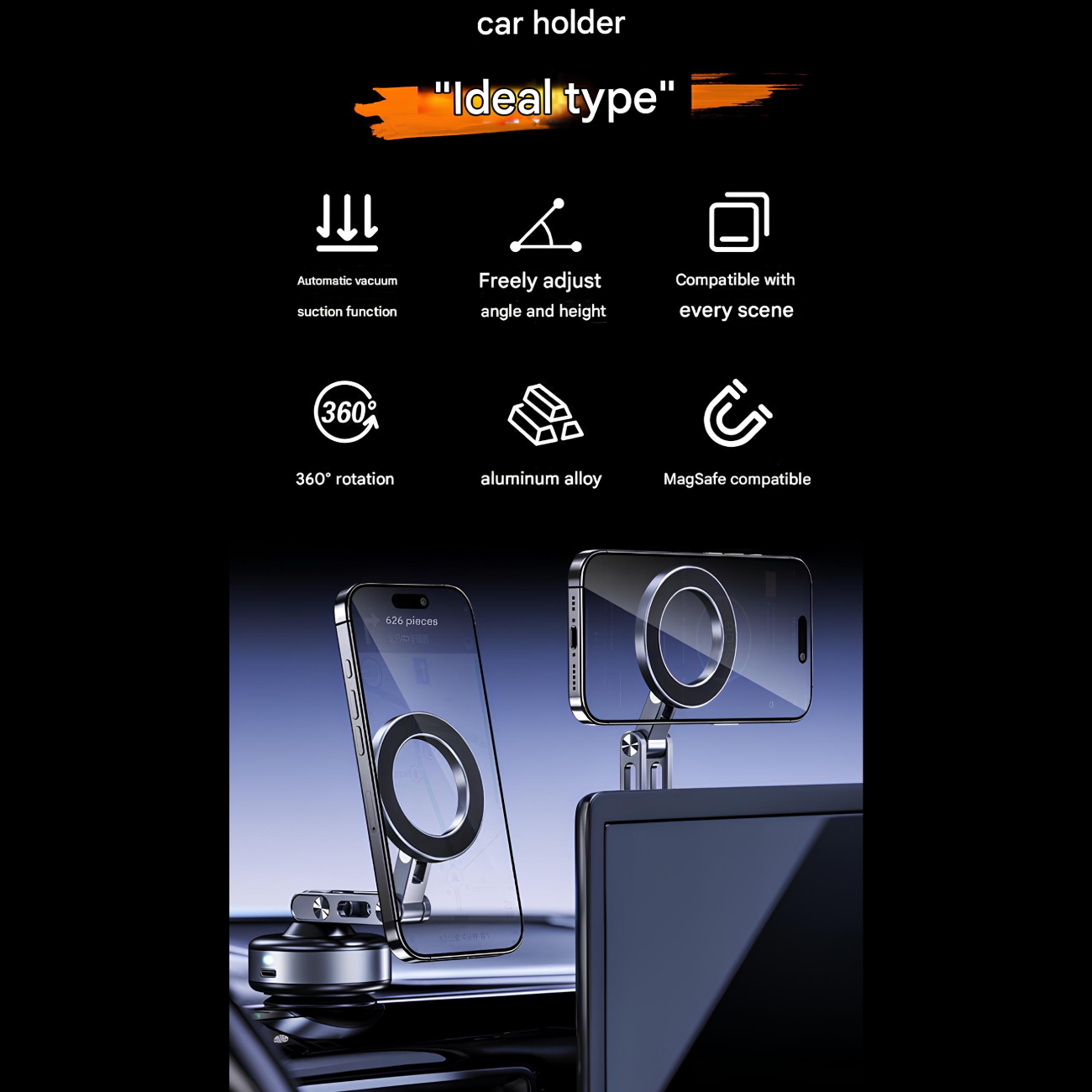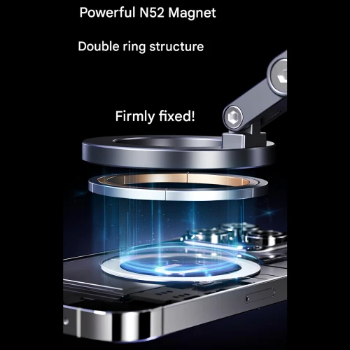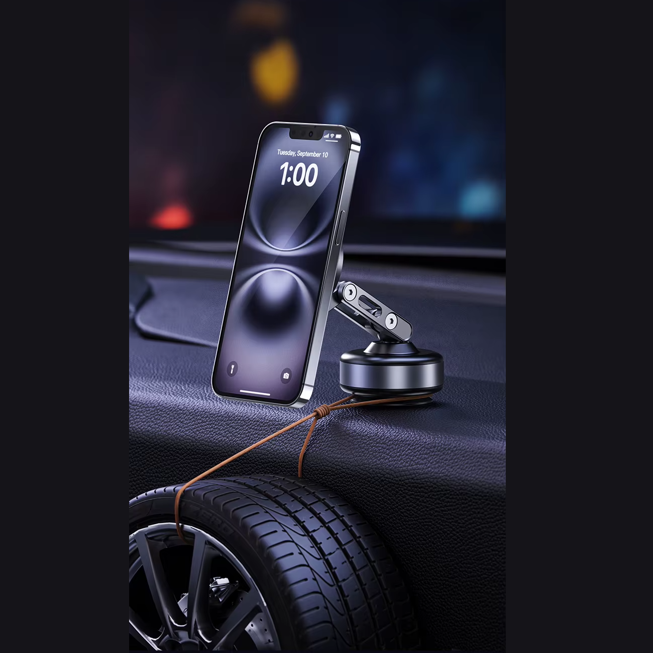 | سایر قابلیت ها | - تکنولوژی مکش: مکش الکتریکی اتوماتیک در عرض 1 ثانیه، بدون آسیب به سطح نصب.، - سازگاری با MagSafe: دارای مگنت N52 با ساختار دو حلقهای برای چسبندگی بهتر به گوشی.، - مناسب برای استفاده در خودرو، دفتر، و سایر سطوح صاف. |