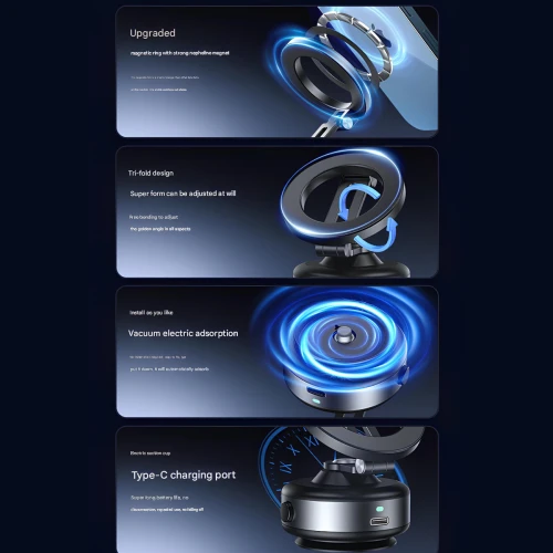 | سایر قابلیت ها | - تکنولوژی مکش: مکش الکتریکی اتوماتیک در عرض 1 ثانیه، بدون آسیب به سطح نصب.، - سازگاری با MagSafe: دارای مگنت N52 با ساختار دو حلقهای برای چسبندگی بهتر به گوشی.، - مناسب برای استفاده در خودرو، دفتر، و سایر سطوح صاف. |