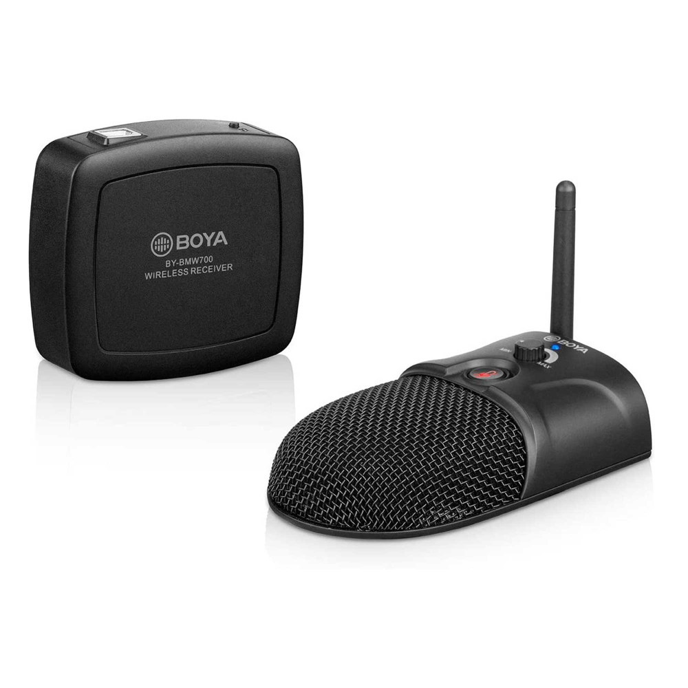 میکروفن وایرلس کنفرانس بویا BOYA BY-BMW700 یک میکروفون بیسیم رومیزیه که کیفیت صدا برای تماسهای صوتی و ویدئویی رو به خوبی ضبط میکنه، پس برای تماسهای ویدیویی در اتاقهایی با سایز کوچک و سایز متوسط که برای برای برگزاری جلسات طراحی شدن و به سیستمهای ضبط صدا مجهزن، بسیار کاربردیه.